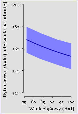 W ciąży prawidłowej częstość uderzeń serca płodu zmniejsza się z około 170 uderzeń na minutę w 11 tygodniu ciąży do 150 uderzeń na minutę w 14 tygodniu ciąży