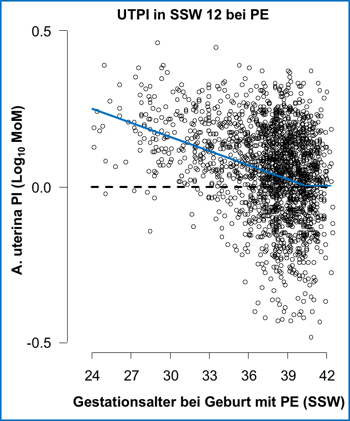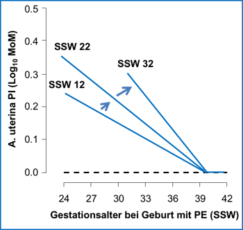 Bei Schwangeren die eine PE entwickeln, sind die UTPI Werte erhöht und die Abweichung der Werte von den MoM-Normalwerten für den Pulsatility Index ist höher je früher aufgrund der PE entbunden werden muss. Folglich ist die Aussagekraft des Screenings für die frühe PE der der späten PE überlegen.